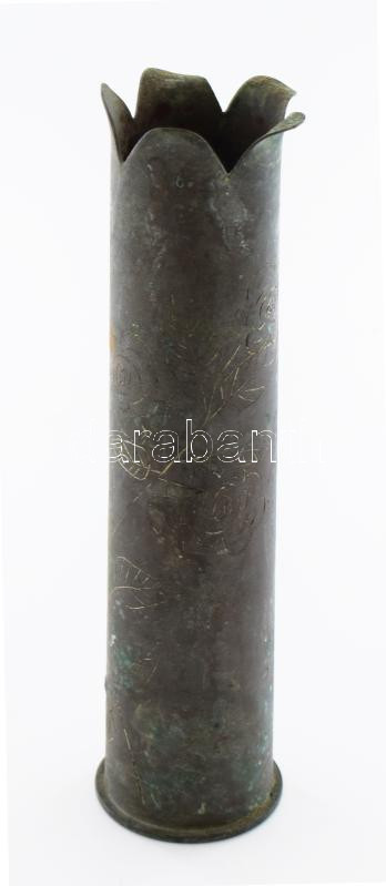 1945 Töltényhüvelyből készült váza, felirattal, m: 20 cm