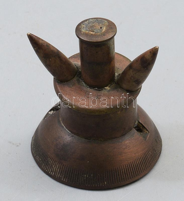 Világháborús időzítőből készített háborús emlék, bronz, m: 6 cm