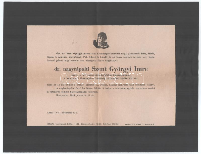 https://www.darabanth.com/en/500-Online-auction/500.0/Art-and-other-collectibles/Printed-Materials~1000015/1943-dr-Nagyrapolti-Szent-Gyorgyi-Imre-curiai-biro-tartalekos-huszarszazados-stb-halotti~II3407444