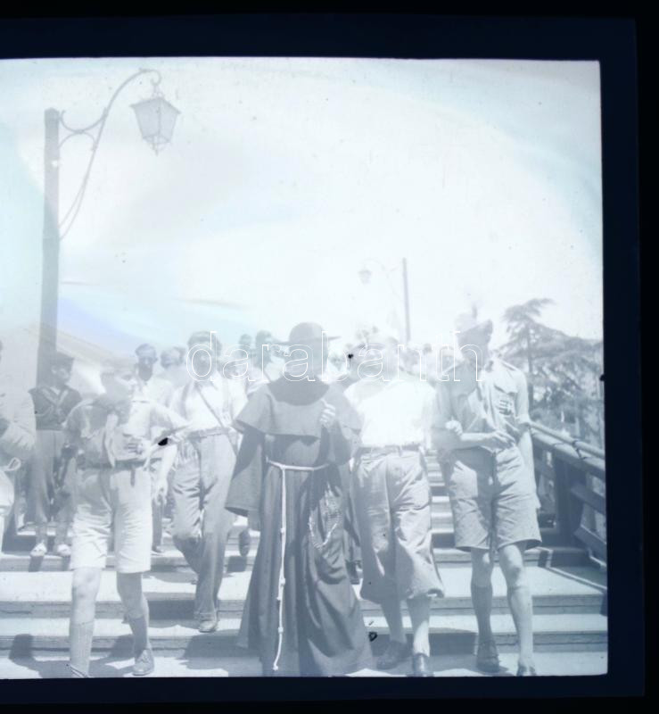 2 darab fotónegatív, magyar cserkészek egyházi személyekkel Olaszorszá...