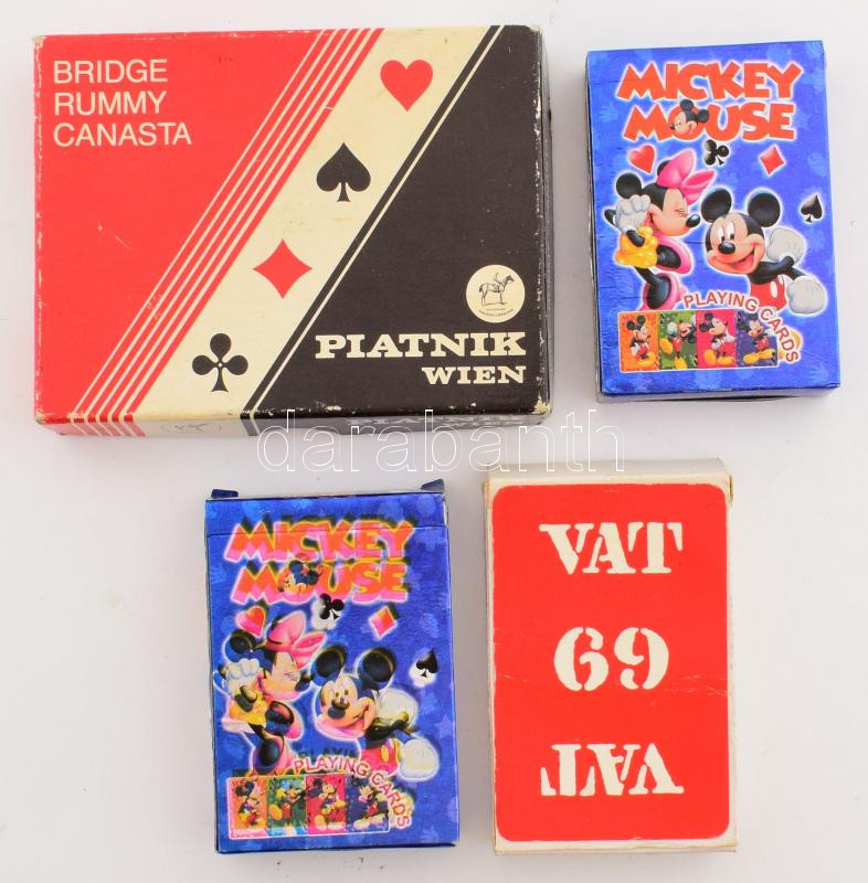 4 csomag francia kártya, römikártya, közte Disney karakterekkel illusz...