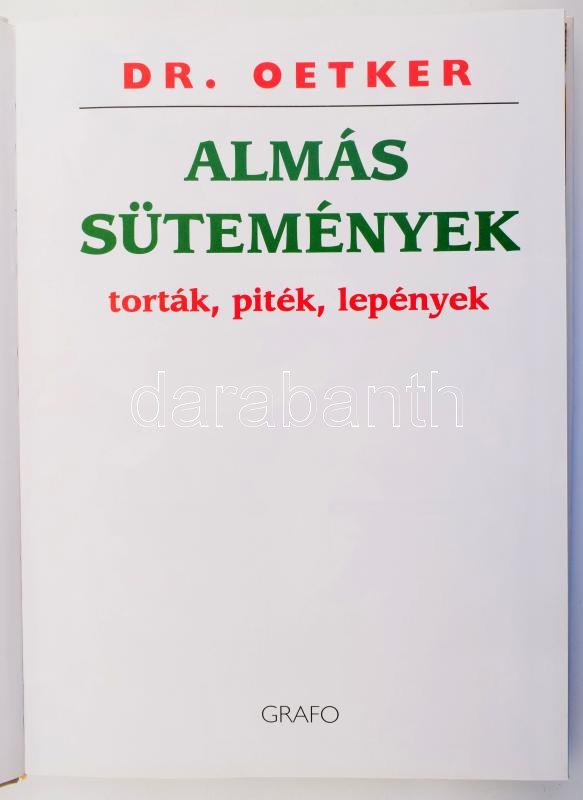 4 darab receptkönyv. Lajos Mari-Hemző Károly: 99 Sütemény és torta 33 színes ételfotóval. Bp.,1986,Corvina. Kiadói kartonált papírkötés + Dr Oetker almás sütemények. + Mária Hajková: Édeskönyv. Fordították Schiller Lívia. Pozsony, 1986, Madách. Kiadói kartonált papírkötés. + A mi süteményes könyvünk. Váncza könyv. Bp.,1936, Váncza és Társa, egészvászon kötés.