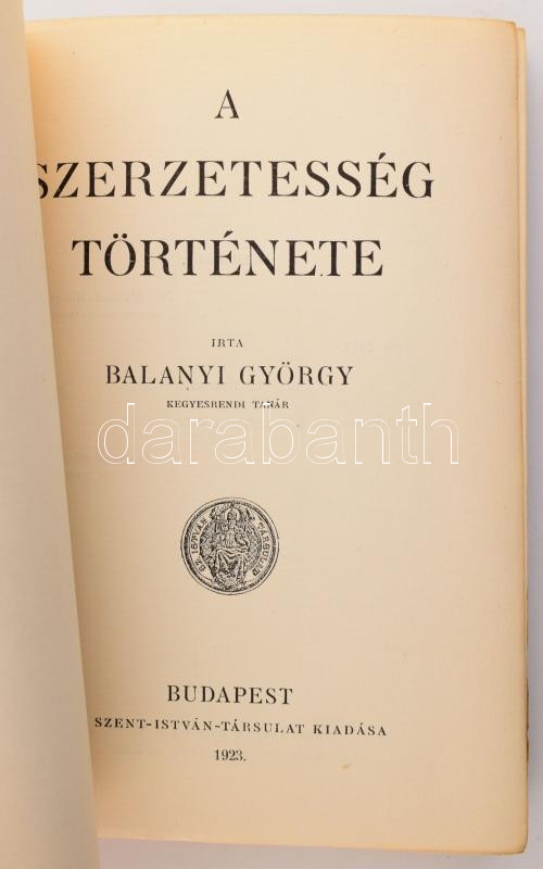 Balanyi György: A szerzetesség története. Szent István Könyvek 5-6. sz... https://www.darabanth.com/en/500-Online-auction/500.0/Books/Books-Religion~2000075/Balanyi-Gyorgy-A-szerzetesseg-tortenete-Szent-Istvan-Konyvek-5-6-sz-Bp-1923-Szent-Istva~II3406291