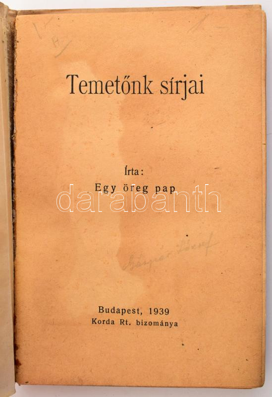 [Czapik Gyula:] Egy öreg pap: Temetőnk sírjai. Bp.,1939.,Korda Rt.,(Eu...