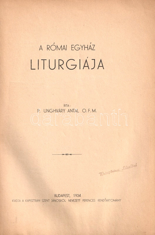 Unghváry Antal András (1877-1944) ferences tartományfőnök munkája a katolikus liturgia fogalomkészletének bevezető jellegű, közérthető összefoglalása: a zsolozsmázás, az egyházi évkör, a miserend, a szentségek kérdéseit egyaránt alaposan kidolgozza.