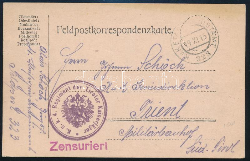 https://www.darabanth.com/en/500-Online-auction/500.0/Hungarian-philately-and-postal-history/Austro-Hungarian-fieldpost-WWI~43/1915-Tabori-posta-levelezolap-Field-postcard-Kuk-4-Regiment-der-Tiroler-Kaiserjager-plus-EP~II2845406
