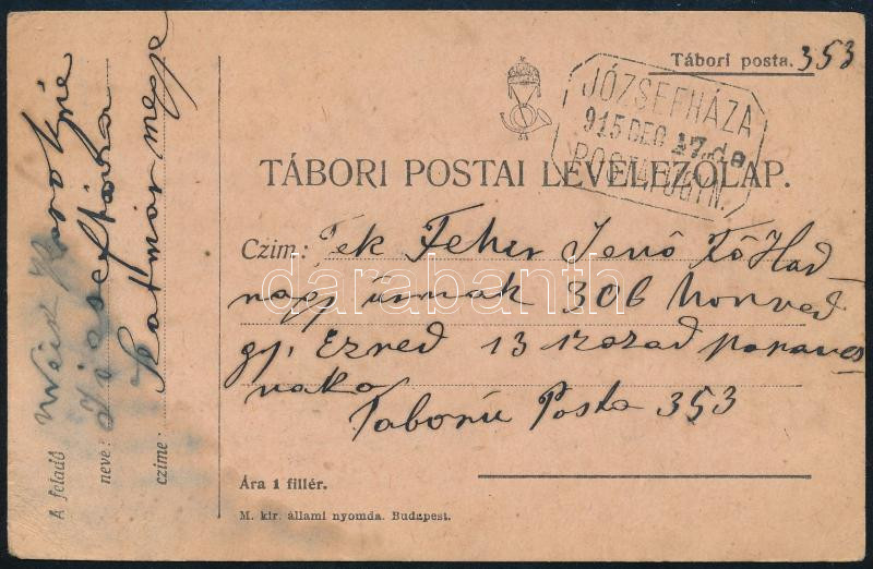 https://www.darabanth.com/en/500-Online-auction/500.0/Hungarian-philately-and-postal-history/Austro-Hungarian-fieldpost-WWI~43/1915-Tabori-posta-levelezolap-JOZSEFHAZA-postaugynoksegi-belyegzessel~II3410304