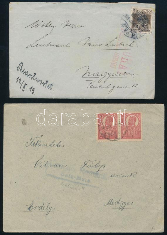 https://www.darabanth.com/en/500-Online-auction/500.0/Hungarian-philately-and-postal-history/Occupation-and-local-issues-1919-1921-with-guarantee~50/1920-2-db-level-szebeni-es-szatmari-cenzuraval-az-egyik-roman-belyegekkel-bermentesitve~II3407745