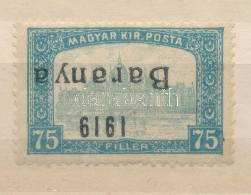 Baranya I. 1919 Parlament 75f fordított felülnyomással, Bodor vizsgálójellel (22.000) (kis szakadás / small torn)