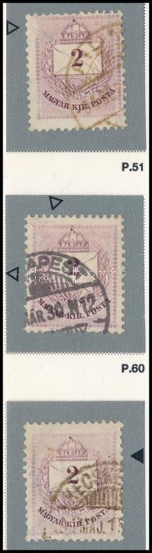 1881 3 db 2kr II. típus klf vésésjavításokkal, nagyon ritkák! Aranyérmes kiállítási anyagból. (ex Orbán, Sebestyén)