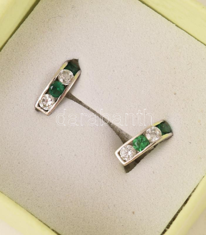 14K fehérarany, köves fülbevaló 0,74 g, jelzett