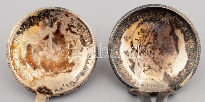 2 darab antik érméből készített ezüst (Ag) kanál, cca 1810/40, egyikbe...