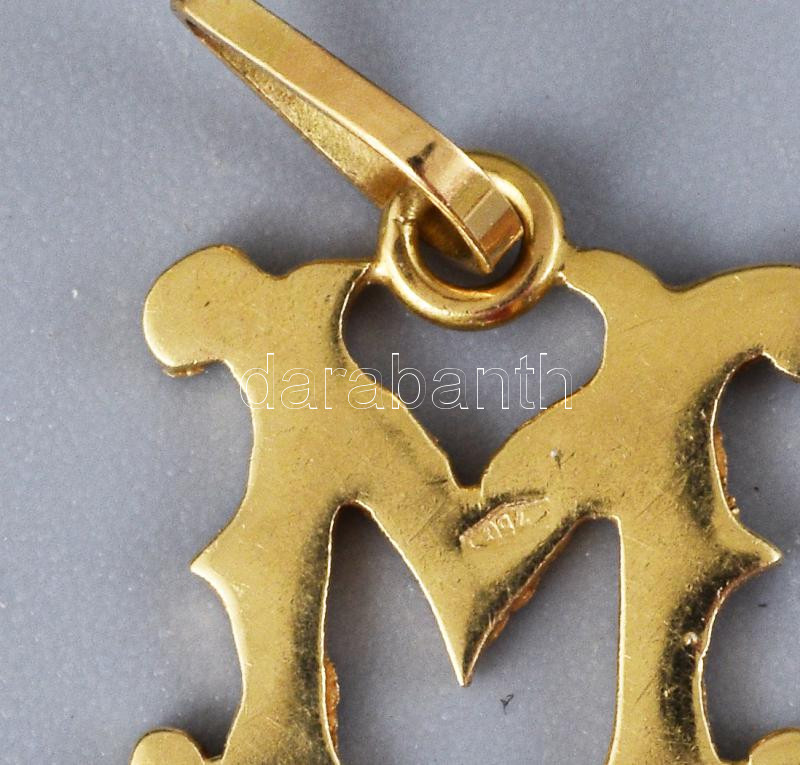 Arany (Au) M betű medál, 18k, jelzett, nettó 0,8g