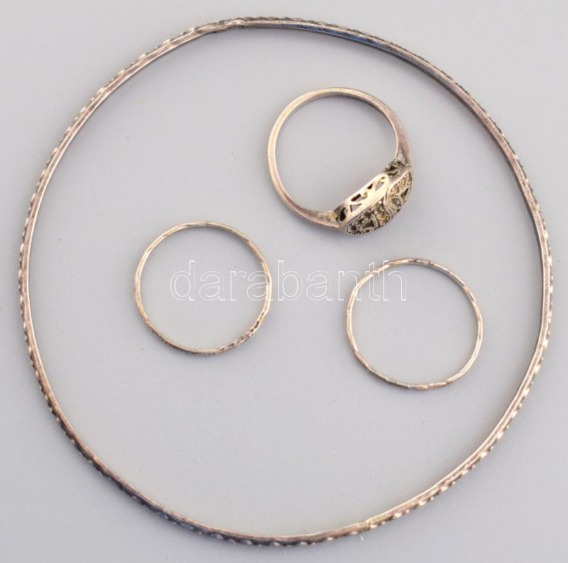 Ezüst (Ag) 4 darabos ékszer összeállítás, karperec, gyűrű, zömmel jelzett, nettó 7,5 g