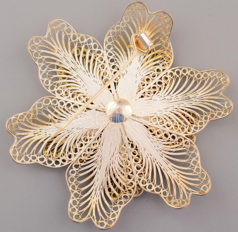 Ezüst (Ag) filigrán bross, jelzett, d: 6,5 cm, nettó 14,3g