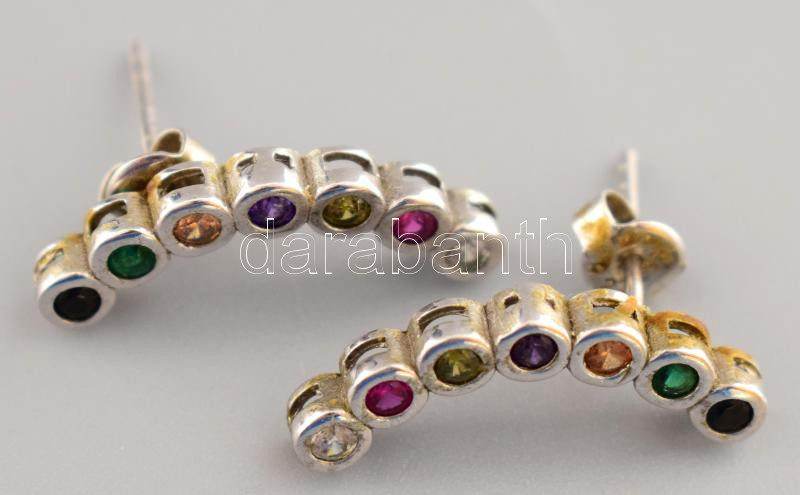 Ezüst (Ag) fülbevaló pár, színes szintetikus kövekkel, jelzett, bruttó 2,6g