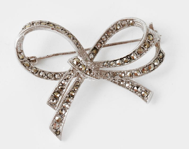 Ezüst (Ag) markazitos masni bross, jelzett, 4,3×3,4 cm, bruttó: 9,8 g