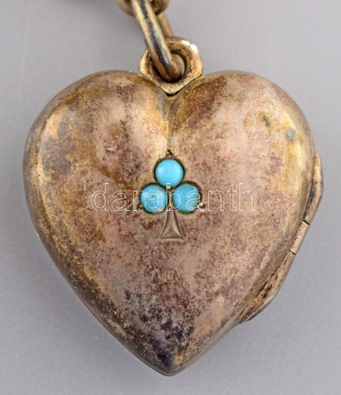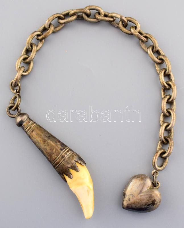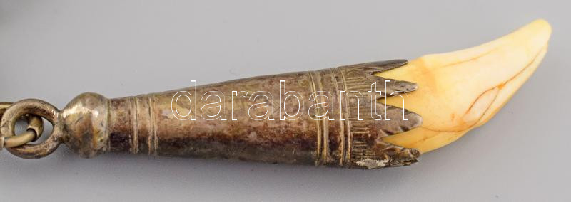 RÉSZBEN ezüst (Ag) emléktárgy, medálban hajdarabbal, ezüst (Ag) foglalatban foggal, h: 32 cm