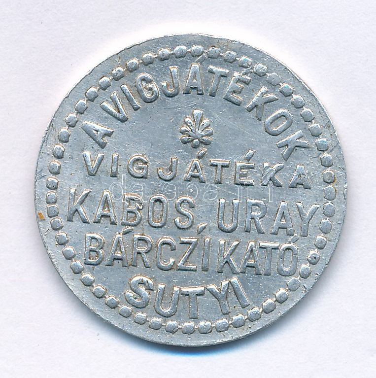 1937 k. "300.000 Pengő az uccán / A vígjátékok vígjátéka Kabos, Uray, Bárczi Kató, Sutyi" kétoldalas Al filmreklám zseton (27,5mm) T:XF