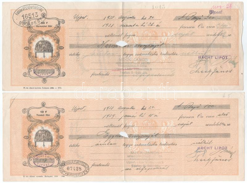 1938-1939. 7db váltó lyukasztással érvénytelenítve T:F