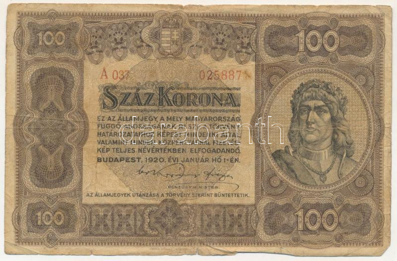 https://www.darabanth.com/en/500-Online-auction/500.0/Numismatics/Hungarian-Banknotes~1500054/1920-100K-Orell-Fussli-Zurich-nyomdahely-jelolessel-A-037-025887-sorszammal-TF-VG-szep-~II3402571