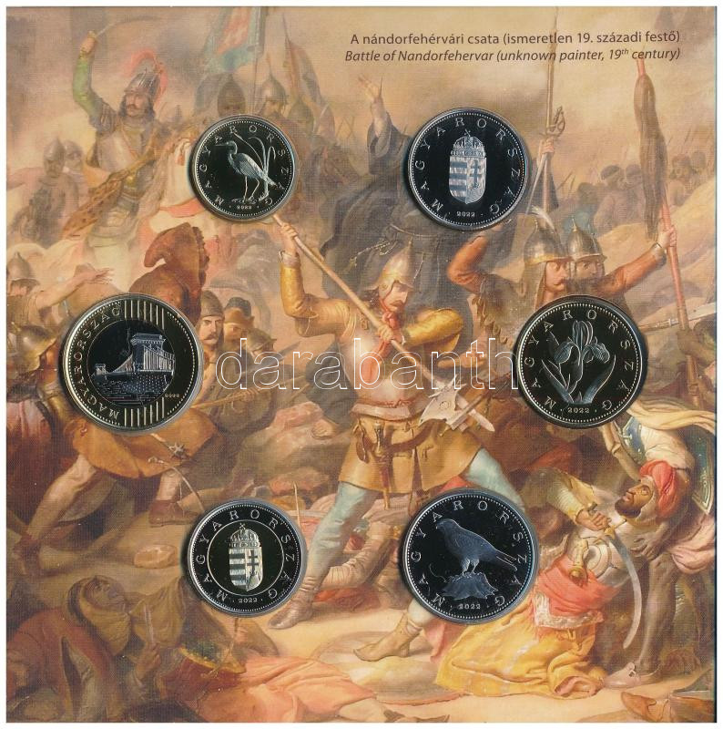 https://www.darabanth.com/en/500-Online-auction/500.0/Numismatics/Hungarian-Coin-sets~1500056/2022-5Ft-200Ft-6xklf-forgalmi-szett-plus-3Cem3EHunyadi-Janos-aranyforint3Cem3E-aranyozott-Ag-utanvere~II3406887