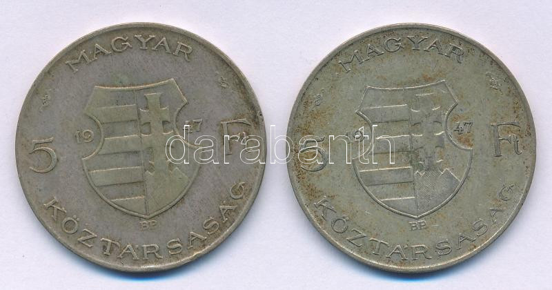 https://www.darabanth.com/en/500-Online-auction/500.0/Numismatics/Hungarian-coins-and-coins-with-Hungarian-mint-marks~1500055/1947-5Ft-Ag-3Cem3EKossuth3Cem3E-2x-TVF-F-patina3Cbr-3E-Adamo-F81~II3406696