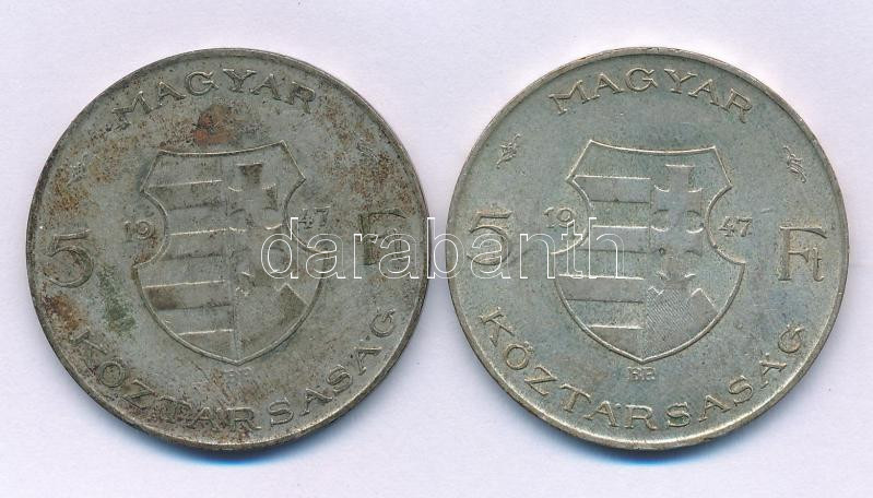 https://www.darabanth.com/en/500-Online-auction/500.0/Numismatics/Hungarian-coins-and-coins-with-Hungarian-mint-marks~1500055/1947-5Ft-Ag-3Cem3EKossuth3Cem3E-2x-TVF-F-patina3Cbr-3E-Adamo-F81~II3406697