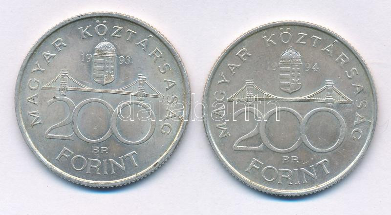 1993. 200Ft Ag "MNB" + 1994. 200Ft Ag "Deák" T:XF ...