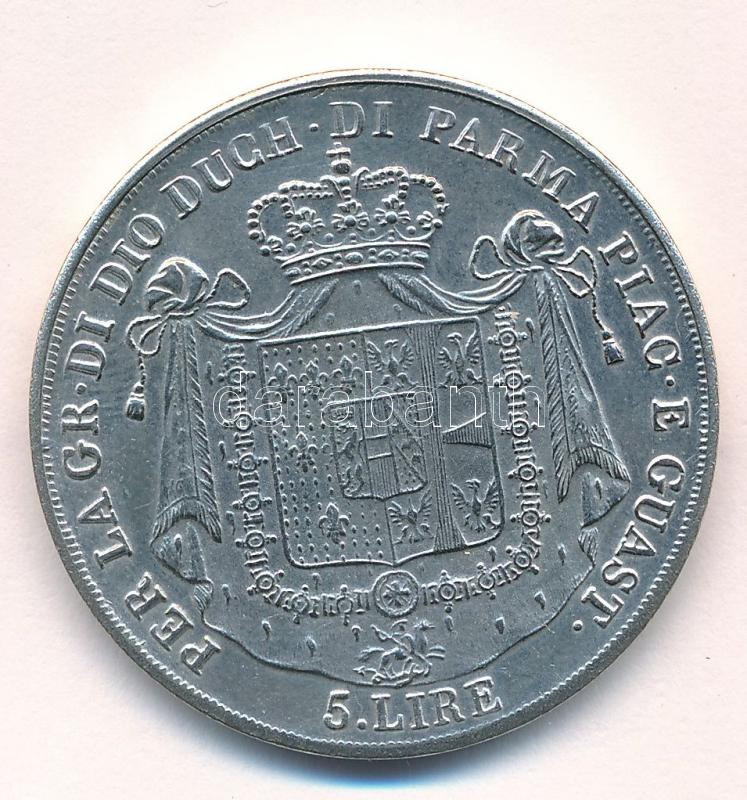 https://www.darabanth.com/en/500-Online-auction/500.0/Numismatics/Replicas-and-counterfeits~1500068/Olasz-allamok-Parma-1815-5L-Maria-Lujza-fem-replika-23-45g-TAU3Cbr-3E-Italian-States-P~II3409678