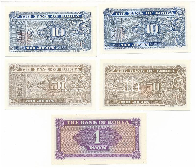 South Korea 1962. 10 Jeon (2xdiff: "1" + "2") + 50 Jeon (2xdiff: "1" + "2") + ND(1962-1970) 1 Won C:UNC