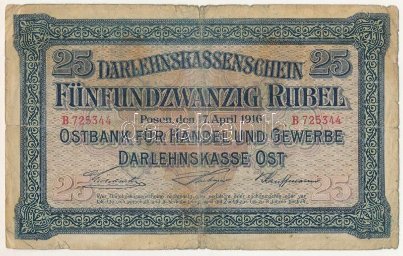Német Birodalom / I. világháború / Keleti Főparancsnokság / Posen (Poz... https://www.darabanth.com/en/500-Online-auction/500.0/Numismatics/Worldwide-banknotes~1500061/Nemet-Birodalom-I-vilaghaboru-Keleti-Foparancsnoksag-Posen-Poznan-1916-25R-TVG3Cbr-~II3407180