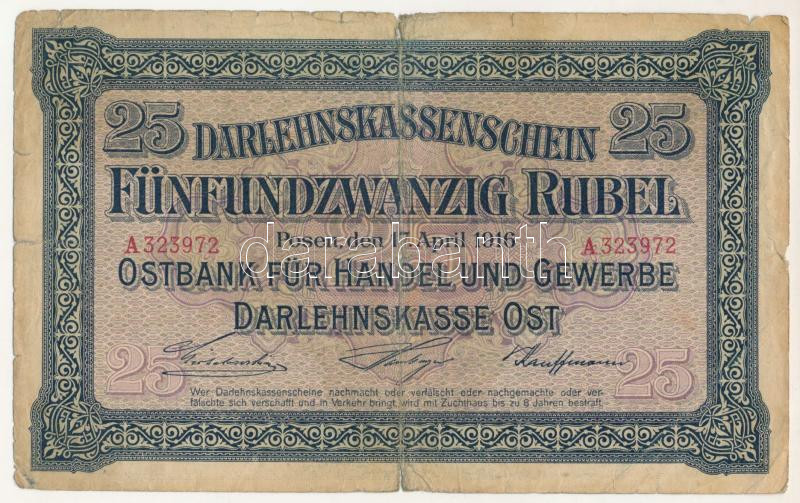 Német Birodalom / I. világháború / Keleti Főparancsnokság / Posen (Poz... https://www.darabanth.com/en/500-Online-auction/500.0/Numismatics/Worldwide-banknotes~1500061/Nemet-Birodalom-I-vilaghaboru-Keleti-Foparancsnoksag-Posen-Poznan-1916-25R-TVG3Cbr-~II3407181