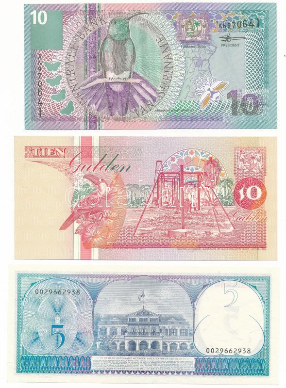 Suriname 1982. 5 Gulden + 1991. 10 Gulden + 2000. 10 Gulden C:UNC, AU