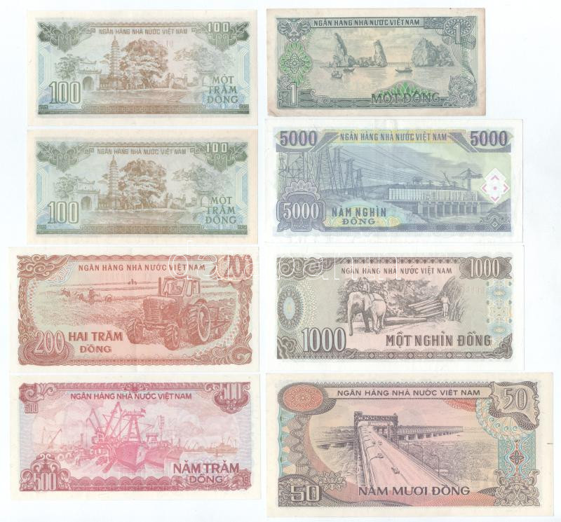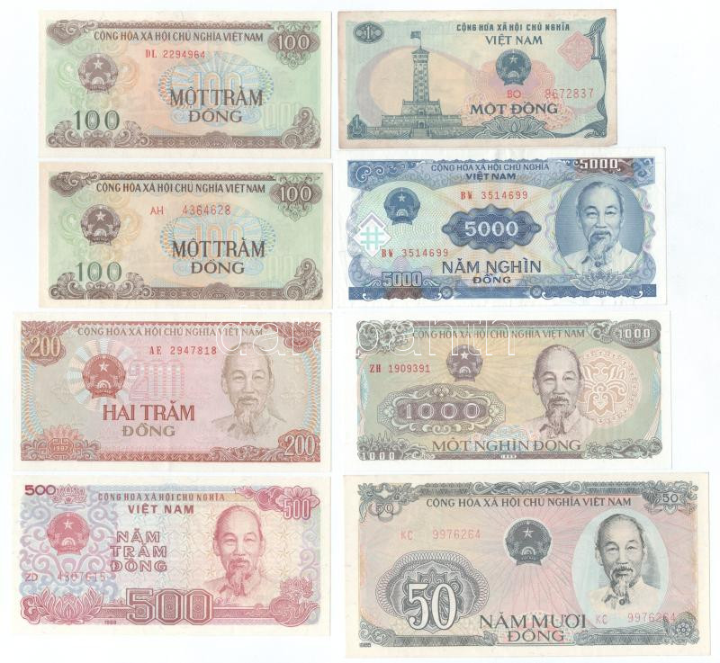 Vietnám DN(1985) 1D + 1985(1987) 50D + 1987. 200D + 1988(1989) 500D + 1000D + 1991(1992) 100D (2xklf) + 1991(1993) 5000D T:AU-F, szép papír