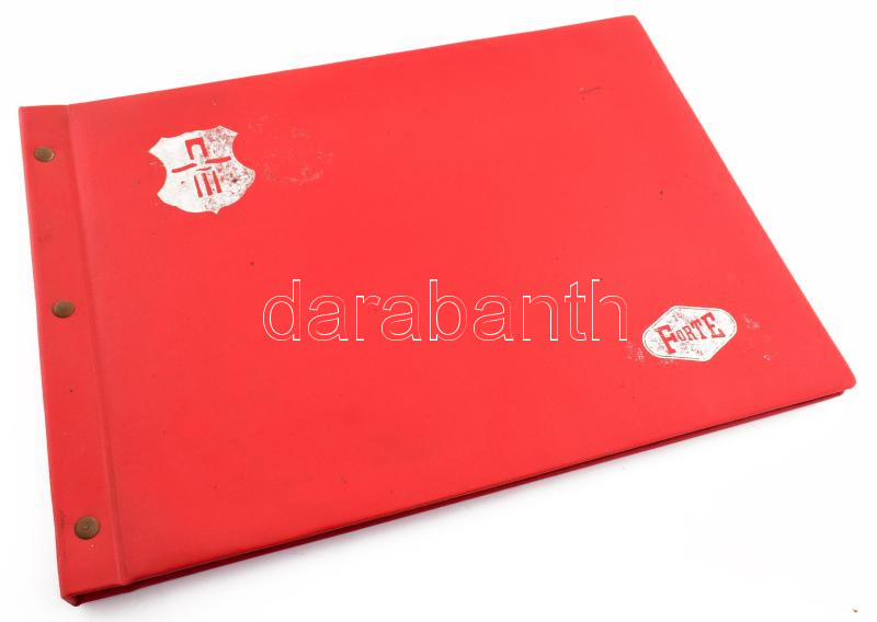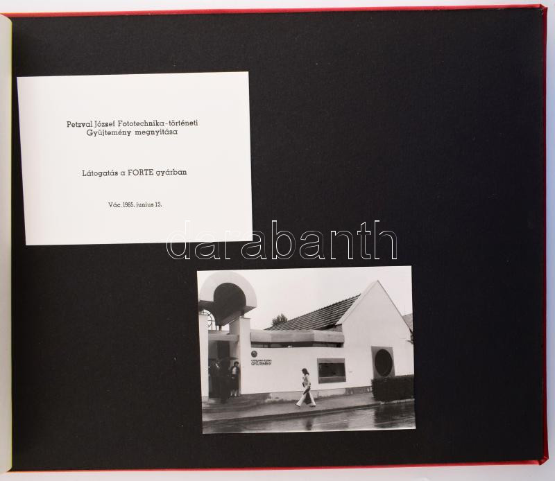 Description: 1985 Vác, Petzval József Fototechnika-történeti Gyűjtemény megnyitása - Látogatás a FORTE gyárban, album összesen 29 db beragasztott fotóval, harántalakú műbőr-kötésben, 25,5x35,5 cm