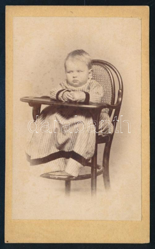 cca 1865 Kisgyermek etetőszékben. Vizitkártya Schöfft K. pesti műtermé...