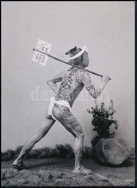 cca 1870 Japán gyalogfutár expresszlevél esetére, 1 db modern nagyítás...