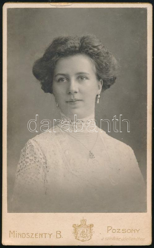 cca 1900 Elegáns hölgy portréja, vizitkártya Mindszenty Béla pozsonyi ...