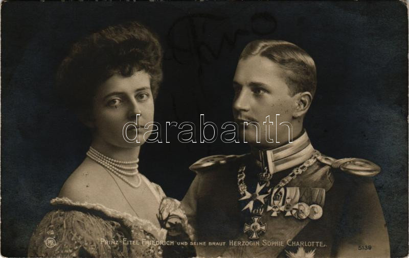 1905 Prinz Eitel Friedrich und seine Braut Herzogin Sophie Charlotte / Prince Eitel Friedrich of Prussia (son of Wilhelm II) and his wife Duchess Sophia Charlotte of Oldenburg (EK)