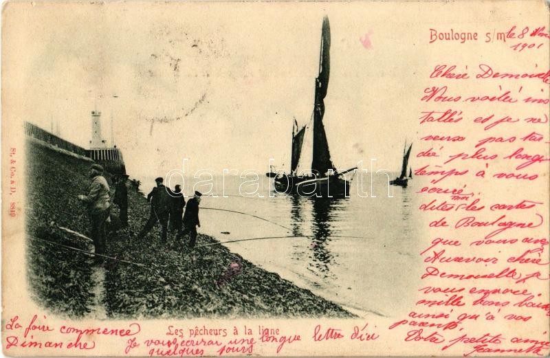 1901 Boulogne-sur-Mer, Les pecheurs a la ligne / anglers, fishermen, l...