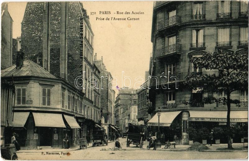 1911 Paris, Rue des Acacias, Prise de l'Avenue Carnot / street view, café, beer hall, automobile, road construction. P. Marmuse (EK)