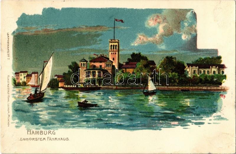 1899 Hamburg, Uhlenhorster Fährhaus / ferry house. Kunstanstalt Karl Leykum Künstlerpostkarte No. 7. litho (surface damage)