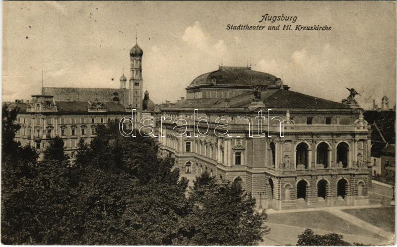 1915 Augsburg, Stadttheater und Hl. Kreurzkirche / theater, church (Rb...