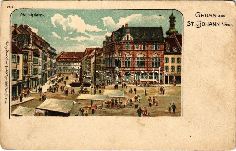 Sankt Johann (Saarbrücken), Marktplatz / market vendors, shops. Verlag u. Druck Kunstanstalt Rosenblatt 6375. litho (EK)