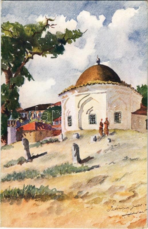 Thessaloniki, Saloniki, Salonica, Salonique; Tombeau dans la ville haute / tomb in upper town. artist signed (EK)