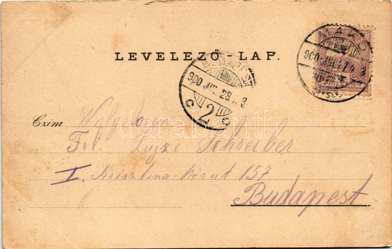 1900 Makó, Megyeháza, Fő tér, M. kir. járásbíróság, főgimnázium, városháza. Kiadja Gaál László. Art Nouveau litho (EK)