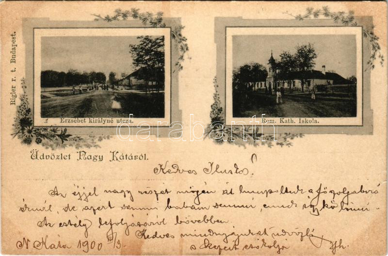 1900 Nagykáta, Erzsébet királyné utca, római katolikus iskola. Rigler ...