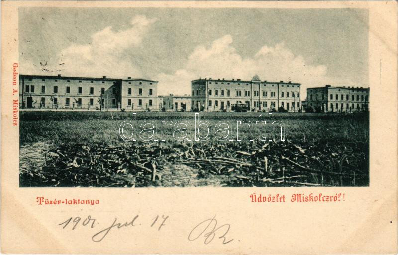 https://www.darabanth.com/en/500-Online-auction/500.0/Postcards/Hungary~2500005/1901-Miskolc-Tuzer-laktanya-villamos-Gedeon-A-kiadasa-EK~II3405706