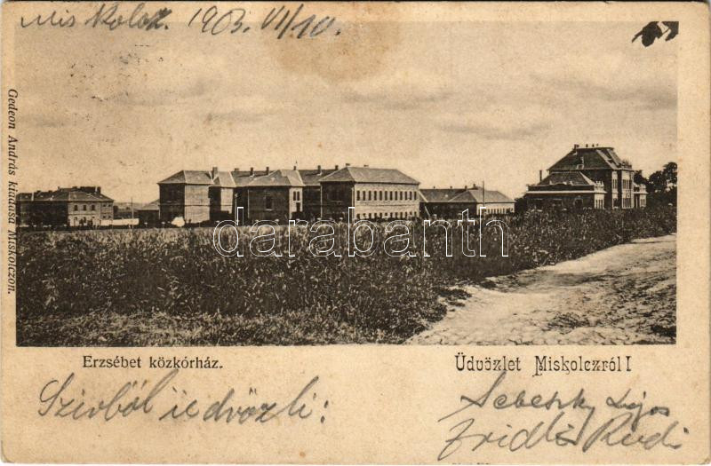 1903 Miskolc, Erzsébet kórház. Gedeon András kiadása (fl)